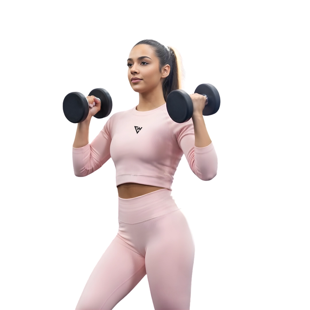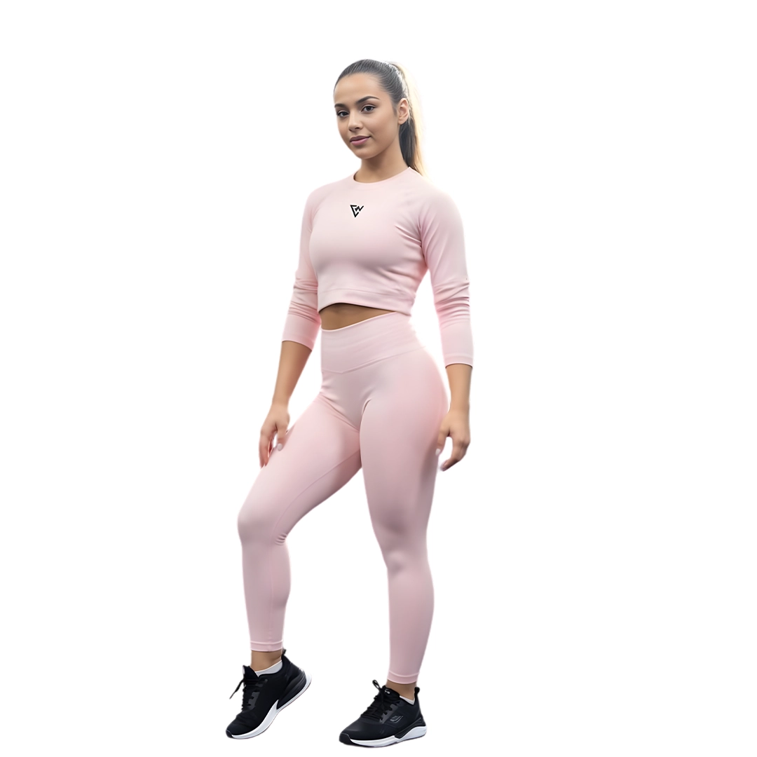 Upgrade your activewear collection with this stylish women’s pink gym wear set, designed for a sleek and confident workout look. Featuring a fitted long-sleeve crop top paired with high-waisted leggings, this matching gym wear set offers a modern silhouette that stands out in every training session. The soft pink tone adds a clean and feminine touch, making it perfect for gym workouts, fitness routines, stretching sessions, and active daily wear.