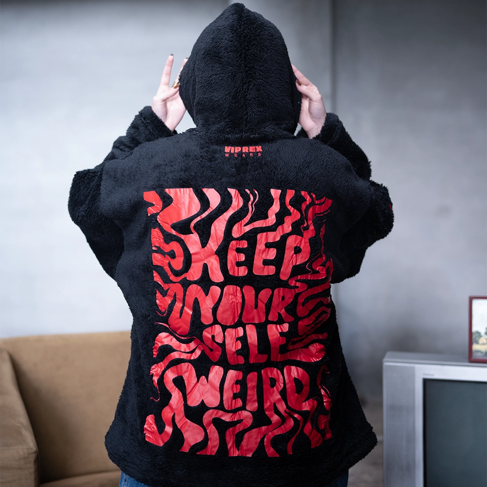 Step into peak winter comfort with the VipreX Wear Bear Black Hoodie Edition, crafted with ultra-plush high-pile sherpa fur that delivers unmatched warmth, softness, and a luxurious oversized feel. Designed for those who embrace their individuality, this hoodie features our signature bold red artwork “Keep Yourself Weird” making it the ultimate statement piece for streetwear lovers in Pakistan.