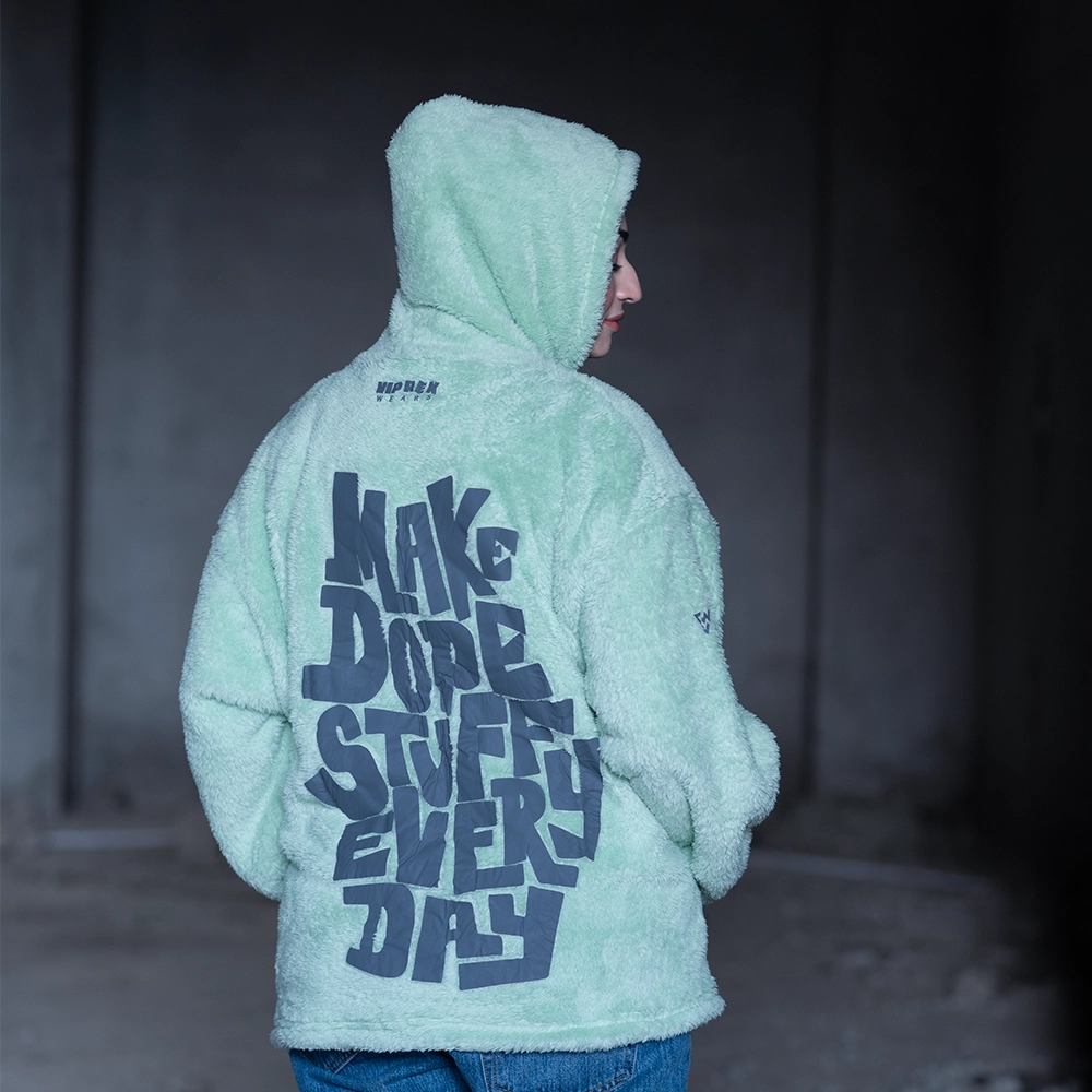 The refreshing mint green shade adds a unique, aesthetic pop to your winter wardrobe, while the bold back artwork “Make Dope Stuff Every Day” embodies the VipreX mindset of hustle, creativity, and self-expression. With an oversized relaxed fit and deep kangaroo pocket, this hoodie gives you complete comfort while keeping your style effortlessly cool.