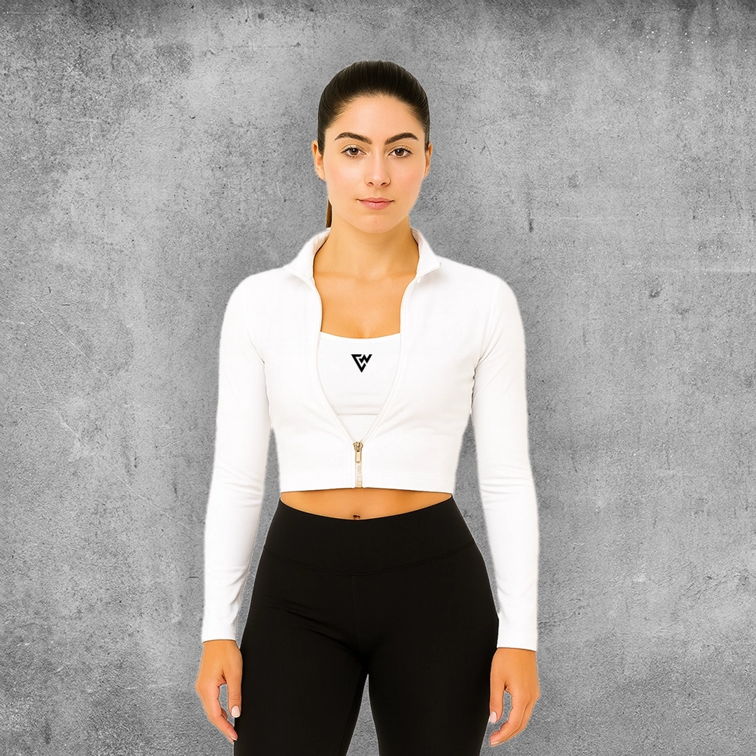 Elevate your activewear collection with this stylish white and black gym wear set featuring a matching sports bra, zip-up jacket, and high waist leggings. Designed for both comfort and performance, this three-piece workout outfit is perfect for gym training, yoga, stretching, jogging, and everyday athleisure wear.